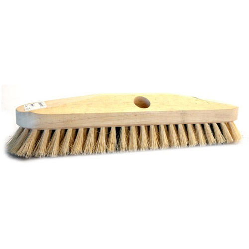 Zo kunt met deze borstels groene aanslag wegschuren van paden of tuinmeubilair, de rug van de schuurborstel bestaat uit hout in de vorm van een anker met een opening voorzien voor eventueel een borstelsteel.