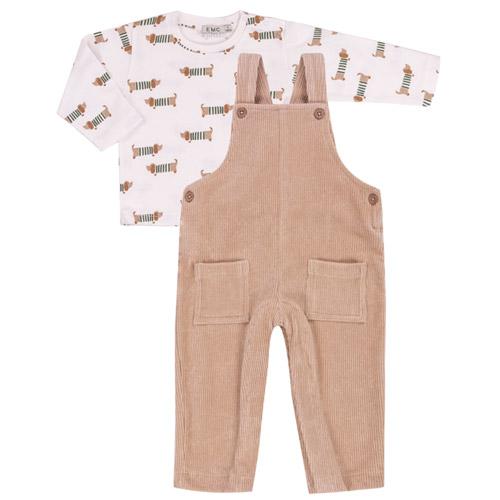 Babypakje EMC tuinpak ecru / t-shirt wit met hondjes OP=OP