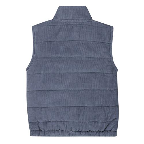 Deze donkerblauwe Dirkje bodywarmer voor jongens voegt net dat beetje extra stoerheid toe aan de winteroutfits.