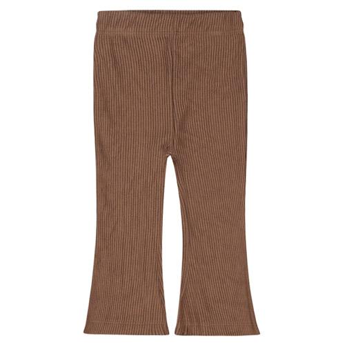 Deze bruine geribde Dirkje broek voor meisjes heeft trendy wijde pijpen en een fijne pasvorm.