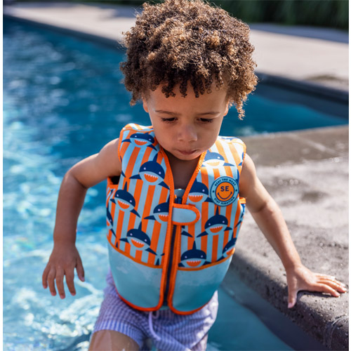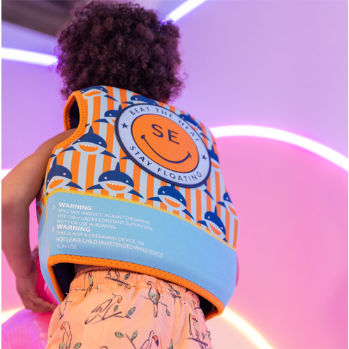 Met deze zwemvest met blauwe haaien motief zorgt u ervoor dat uw kind in alle veiligheid het zwembad in kan.