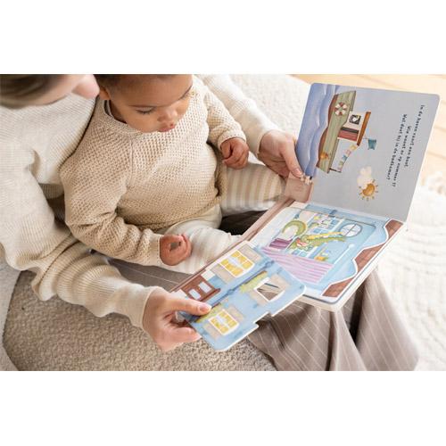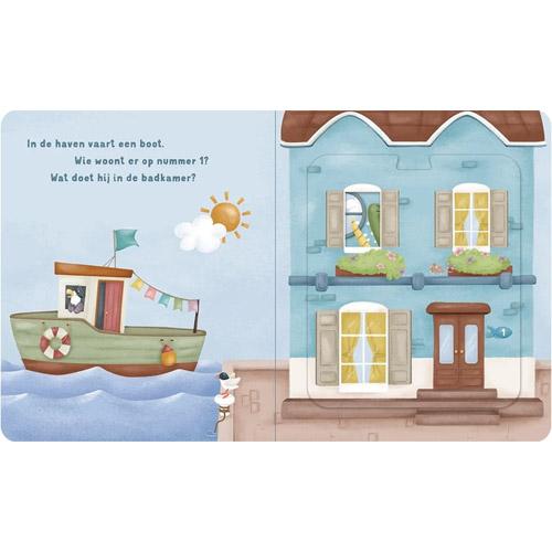 Als je de puzzelstukken uit het boek haalt, kun je met alle stukken één groot huis maken.