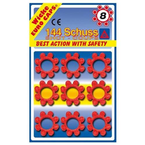 Deze 8-shots knapstrips zijn geschikt voor speelgoedpistolen die gebruik maken van 8-ring patronen.